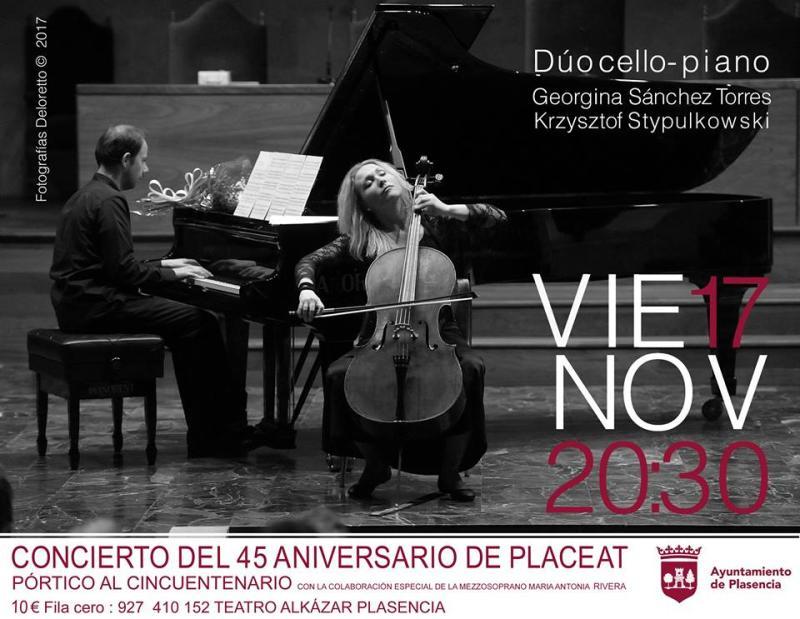 Krzysztof y la violonchelista Georgina Sánchez Torres interpretarán obras de S. Rachmaninoff, A. Dvořak, É. Lalo, G. Sánchez, J. Nin, V. Monti, E. Ocón. La Asociación Placeat es la ONG de Plasencia que trabaja a favor de las personas con discapacidad intelectual. Viernes 17 de noviembre de 2017, Teatro...