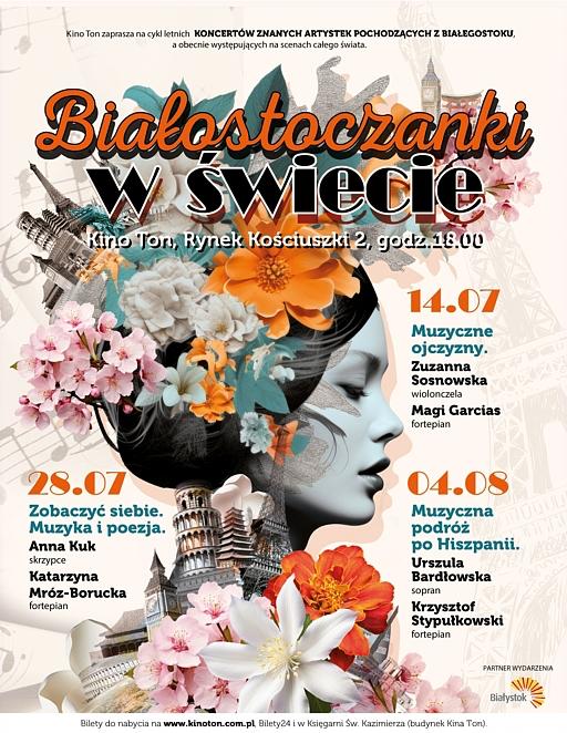 Concierto junto a la soprano Urszula Bardłowska, dentro del Festival «Białostoczanki w świecie». Obras de Isaác Albéniz, Falla, Pedrell, Lorca, Ortega, Obradors, Halffter. Domingo, 4 de agosto de 2024, Kino Ton, Rynek Kościuszki 2, Białystok, Polonia.18:00h